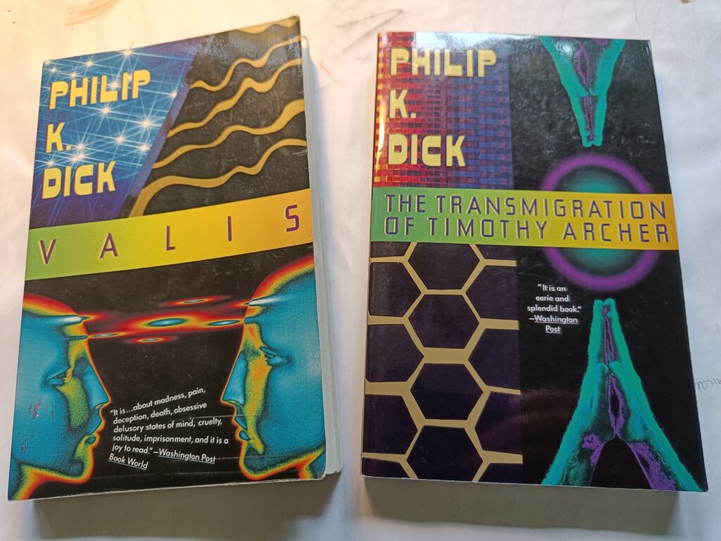 Allan notes that the process of asking what sort of writer she is involves “turn[ing] to other writers for insight and inspiration”, and this is a habit I recognise in myself. It is perhaps slightly concerning that the writer to whom I am currently turning is Philip K Dick, thanks to having stumbled across a small collection of his mid- and late-period novels—in the gloriously po-mo “I have an early version of Photoshop and I’m gonna use it” livery of the early 1990s Vintage reissues—in a local second-hand store a few weeks back.